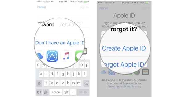 Шаг 2 Выберите У вас нет Apple ID или забыли его? вариант и нажмите Создать Apple ID возможность создать Apple ID с вашим адресом электронной почты. После этого вы должны ввести свой день рождения, имя и фамилию.