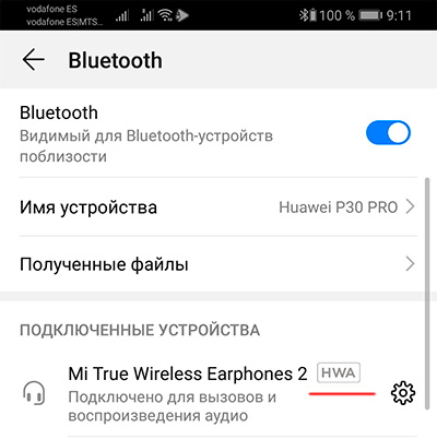 К Huawei P30 Pro эти наушники подключились по фирменному хуавеевскому кодеку HWA (он как раз основан на кодеке LDHC).