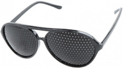 Для снятия усталости глаз и устранения «зрительных» жалоб также используются разные виды очков-тренажеров — перфорационные, дифракционные, в «дырочку» и «сеточку», очки «Комфорт», «Релакс», «Супер-Вижн», «Лазер-Вижн», «Новое Зрение». Все это — очки для коррекции зрения, действующие по принципу ограничения светового потока с помощью отверстий во вставках очков. Использовать такие очки рекомендуют по 30 мин в день. Кроме некоторого оптического эффекта, очки имеют еще и психологическое воздействие на пользователя за счет достижения состояния покоя и расслабления психики, поскольку человек считает, что активно исправляет свое зрение. Существенного улучшения зрения вследствие использования таких тренажеров добиться нельзя, но частично зрение все же улучшается — за счет снятия спазма аккомодации, возникающего в процессе работы.