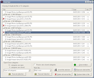 CloneSpy – это небольшая утилита для поиска и удаления идентичных файлов на носителе информации (винчестер, флешка). Программа очень удобная. Но она имеет два минуса: английский интерфейс, а также отсутствие предосмотра найденных файлов.