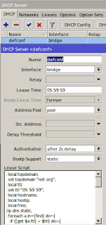 Указанный выше текст скрипта поместите в поле «Lease Script». Т.е. скрипт будет выполняться по событиям, связанным с арендами IP-адресов (добавление или удаление).