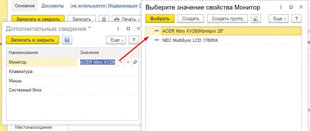 Возвращаемся в нашу карточку и видим, что в списке дополнительных сведений появилось новое поле. Заполняем его, при этом, в случае необходимости, в состав значений можем добавить новую страну.