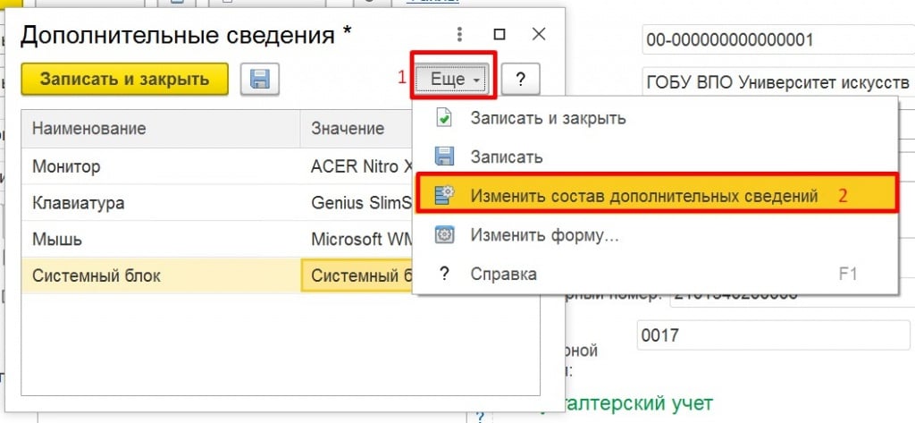 Таким образом заполняете необходимые сведения. Состав дополнительных сведений при необходимости можно изменить, так же нажав на кнопку «Ещё» — «Изменить состав дополнительных сведений».