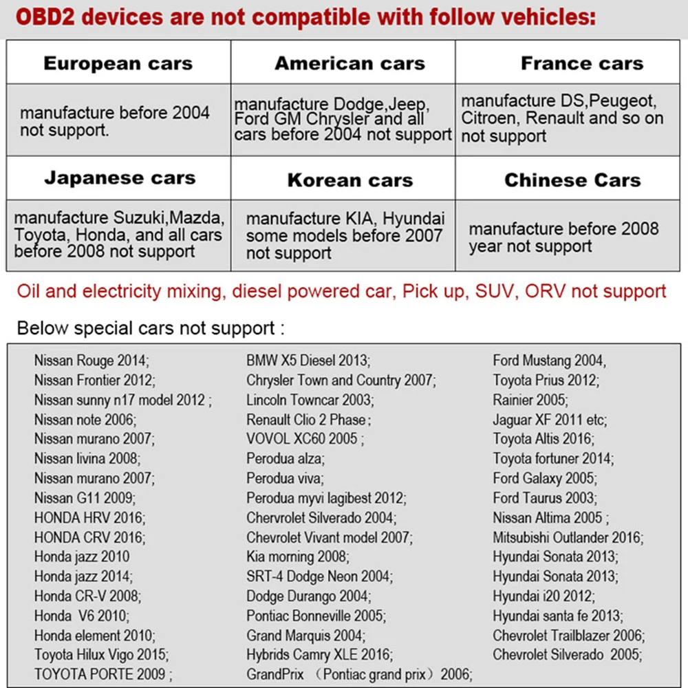 3. Не поддерживает некоторые специальные автомобили (протестированы и абсолютно не поддерживаются):