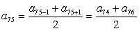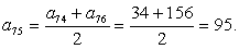В арифметической прогрессии ( an ) a74 = 34; a76 = 156. Найдите семьдесят пятый член этой прогрессии.