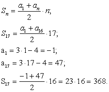 По условию известна формула n-ого члена исходной прогрессии ( an ) an = 3 n — 4. Можно найти сразу и a1 , и a16 без нахождения d . Поэтому воспользуемся первой формулой.