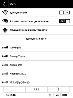 - подключение к Wi-Fi, с помощью этой возможности можно без компьютера скачивать новые файыа непосредственно в саму книгу или карту памяти.