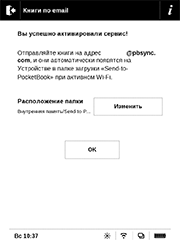 Аналогичный сервис загрузки книжек в ридер «по воздуху» разработала и компания Pocketbook. Для отправки контента производитель предлагает использовать обычную электронную почту. Это работает так: на присвоенный ридеру электронный адрес Вы посылаете со своего ящика письмо, к которому прикрепляете книги, а после подключения ридера к Wi-Fi-сети этот контент автоматически загружается в устройство.