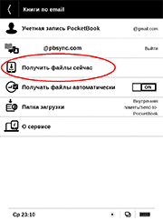 Также можно получить книги вручную, чтобы не ждать автоматической загрузки, которая обычно занимает некоторое время. Для этого нужно в разделе «Настройки» выбрать Аккаунты и синхронизация > Книги по email > Получить файлы сейчас.