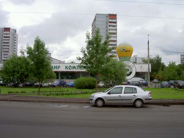 Не заметить магазин практически невозможно, в том числе и из-за радостного подобия воздушного шара. Переходим сквер и оказываемся у входа. Таким образом, если пользоваться рекомендациями девушки с телефона, но выходить из правильного выхода, дорога от метро займет в среднем 15 минут на маршрутном такси. А обратно к метро так просто уехать не удастся. Нужно пешком идти либо через сквер (те же 15 минут), либо до проезда Дежнева около пяти минут. У магазина есть оборудованная стоянка для автомобилей примерно на 30 машин.