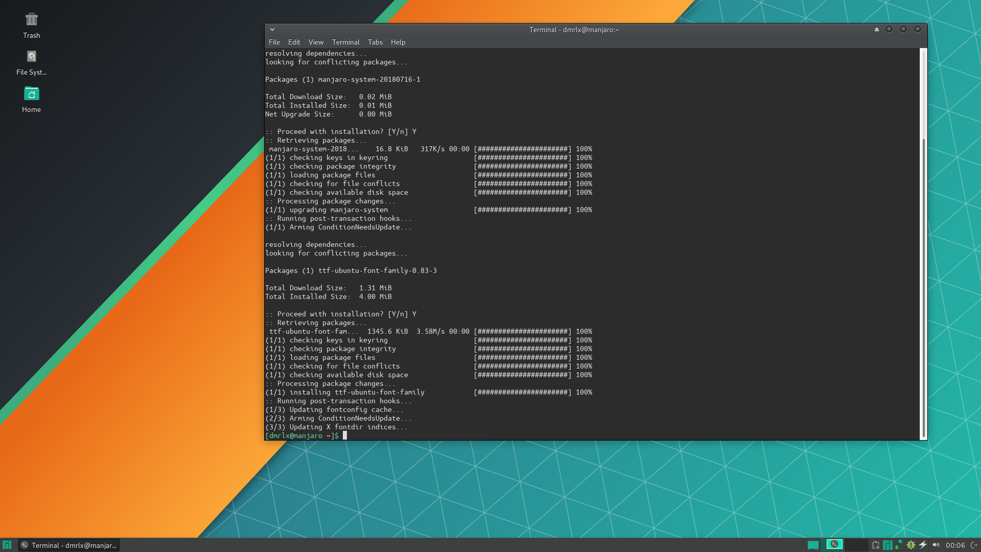 Первое, что я устанавливаю (это стыдно) — шрифт Ubuntu. Мне очень не нравятся встроенные шрифты в Manjaro, а Ubuntu очень нравится. Поэтому вызываем Terminal и выполняем: